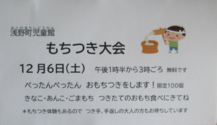 毎年恒例 もちつき大会を行います。 皆さん 来てください。 (限定100人分) ◎お餅