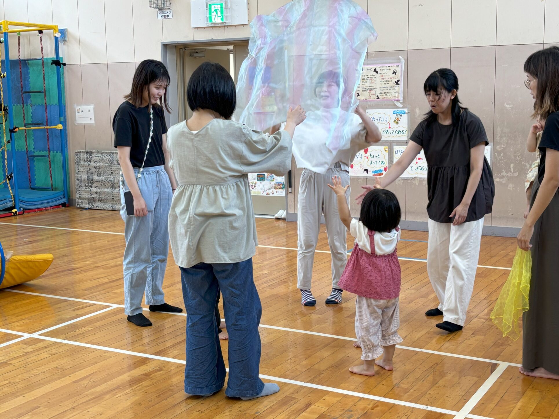 先日のかんがるー教室では、親子で「ふわっとクロス」で遊びましたっ♪