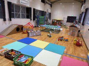 遊戯室でたくさん遊べるように、おもちゃやトランポリン、滑り台などを用意しています。