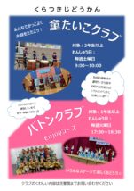 童たいこクラブ、バトンクラブ員を募集しています 詳しくは児童館までお問い合わせください