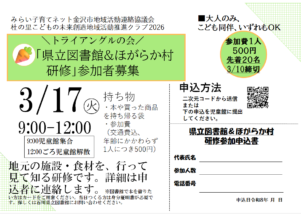 親子でも大人のみでも参加できます! お友達を誘って、県立図書館📚&ほがらか村へ🥕レッツゴー!