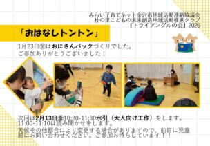 今月のもりのさとひろばは、水引を変更して、「おにさんバック」作りをします🎵 寒い中ですが、元気に遊ん