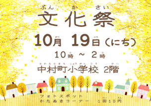 10/19(日) 10時~2時 中村町小学校2階 フォトスポットあります♪ かたぬき