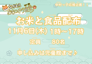 中村っ子応援企画! お米と食品配布 11月6日(木) 1時 ~ 17時 定員 80名
