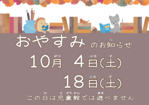 10/4(土) 10/18(土) 児童館はおやすみですm(__)m