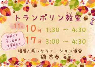 10/6、10/20(月) 3時~5時(全学年) ※無料ですが申し込みが必要です。 ※新しくトランポ