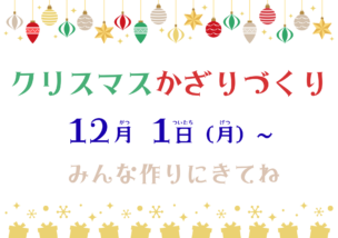 12月1日~ クリスマスのかざりを作ります🎄 みんながつくったかざりで児童館をかざりつけよう🔔♪