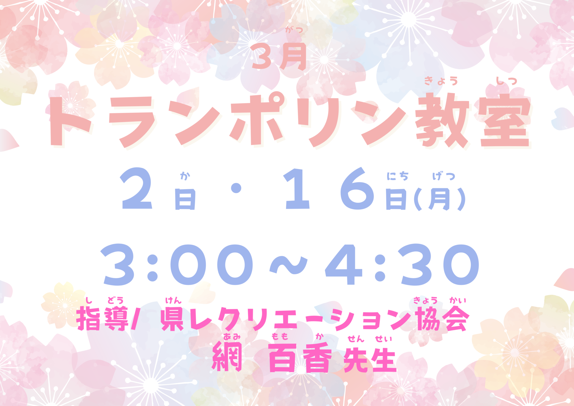 ※新しくトランポリン教室に入りたい子は児童館に申し込み用紙を取りに来てください。