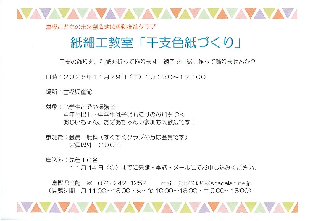 富樫こどもの未来創造地域活動推進クラブの会員の方は無料です。