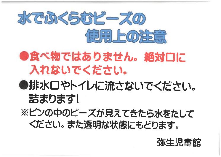 “水でふくらむビーズの使用上の注意”の用紙を渡し忘れました。